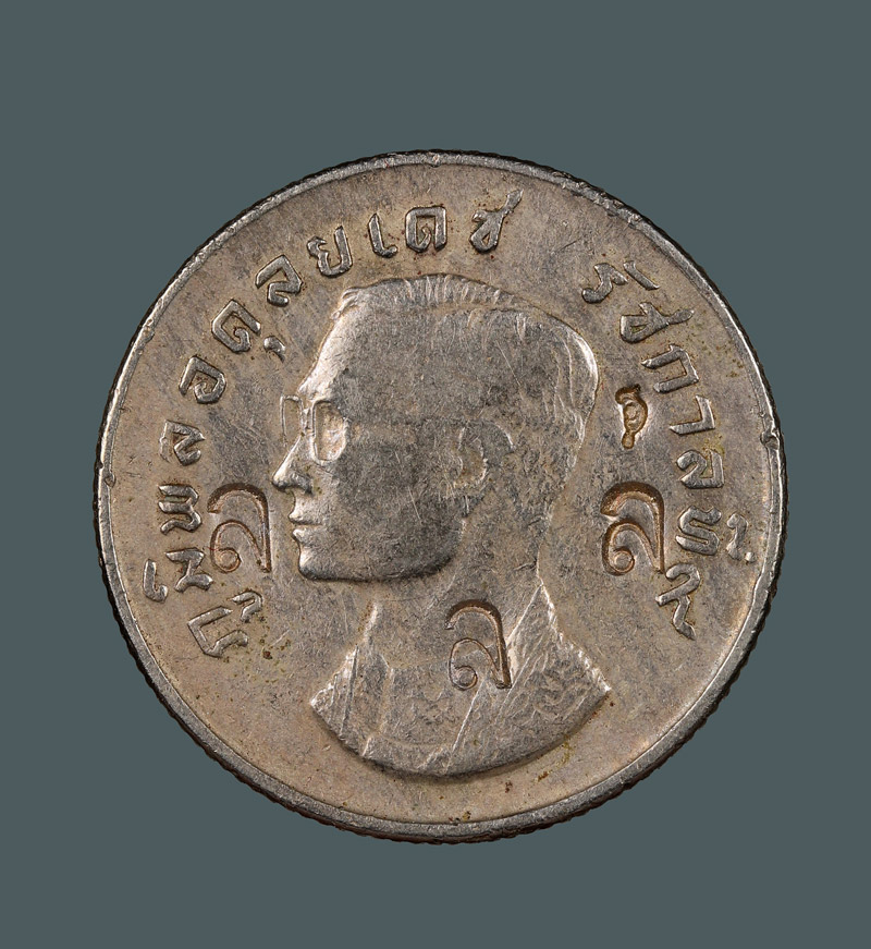 เหรียญขวัญถุง หลวงปู่หลิว วัดไร่แตงทอง จ.นครปฐม ตอกโค๊ต ล. สร้างน้อย (เหรียญบาท ร.9 หลังครุฑ ปี 2517) องค์นี้ตอก 4 โค๊ต