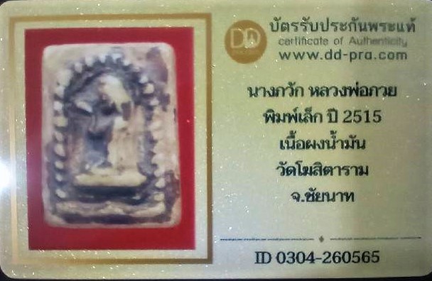 ลพ.กวย นางกวัก หลังยันต์พุฒ (พระเจ้าห้าพระองค์) พบน้อย ปี 2515 เนื้อจัด (เคยลงรักน้ำเกลี้ยงปิดทองเก่า) ดูง่ายสบายตา + บัตรรับรอง