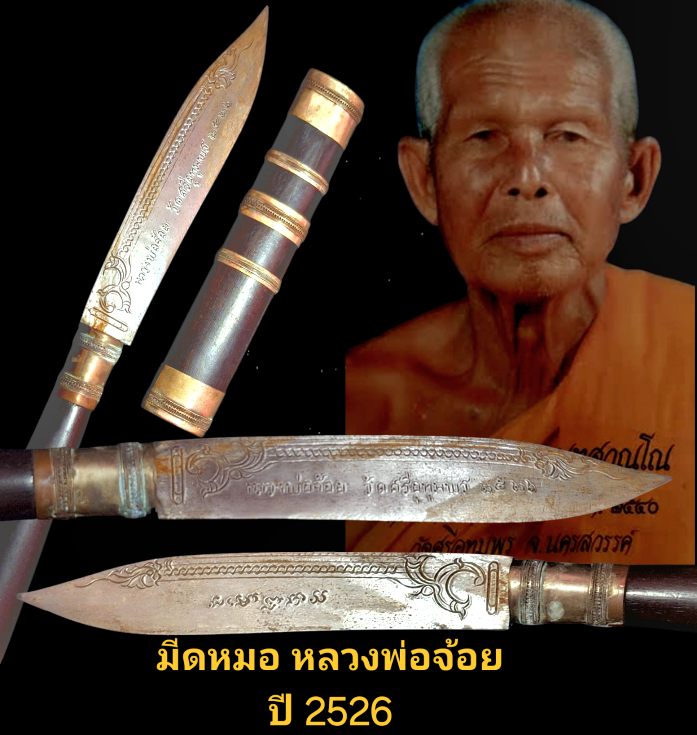 มีดหมอ หลวงพ่อจ้อย ขนาดยาว 9 นิ้วรวมปลอก 10 นิ้ว ปี 2526 วัดศรีอุทุมพร จังหวัดนครสวรรค์